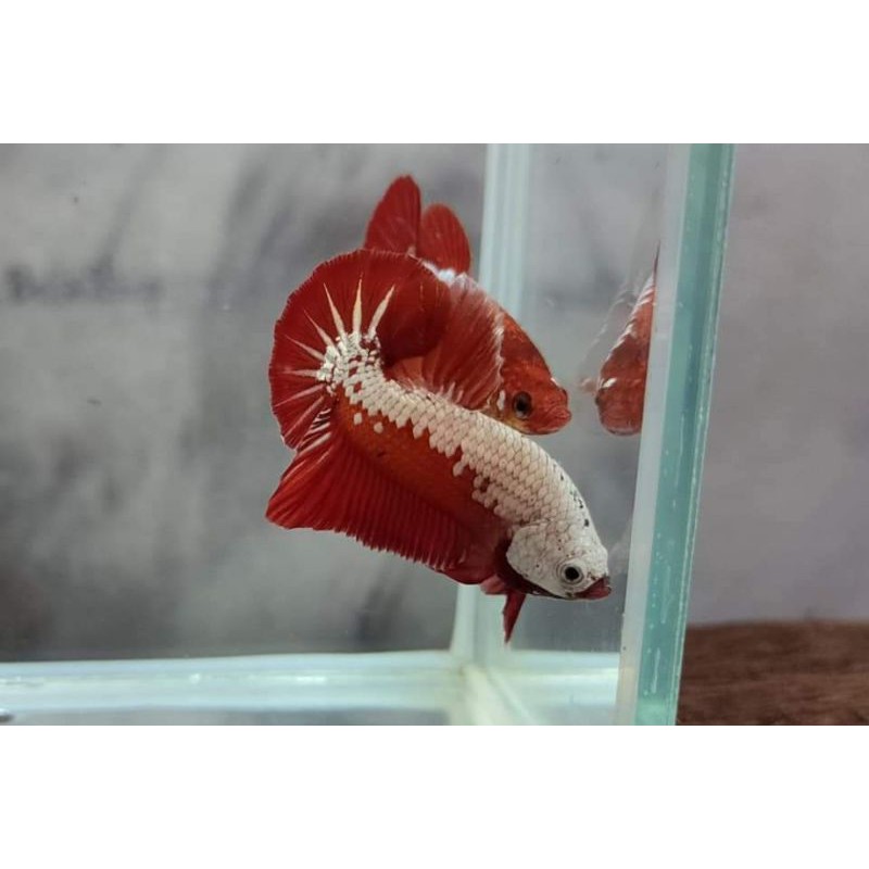 Jual ikan cupang hias super red merah crowntail maskot merah betta aduan dengan harga rp.120000.